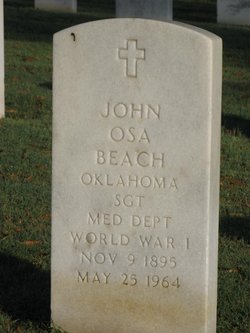 John Osa Beach, son of John Hiram Beach, Fort Gibson National Cemetery, Muskogee, Oklahoma. Thanks for permission from Find A Grave contributor Lonnie Hoover to use this photo. Click on photo to enlarge it. |