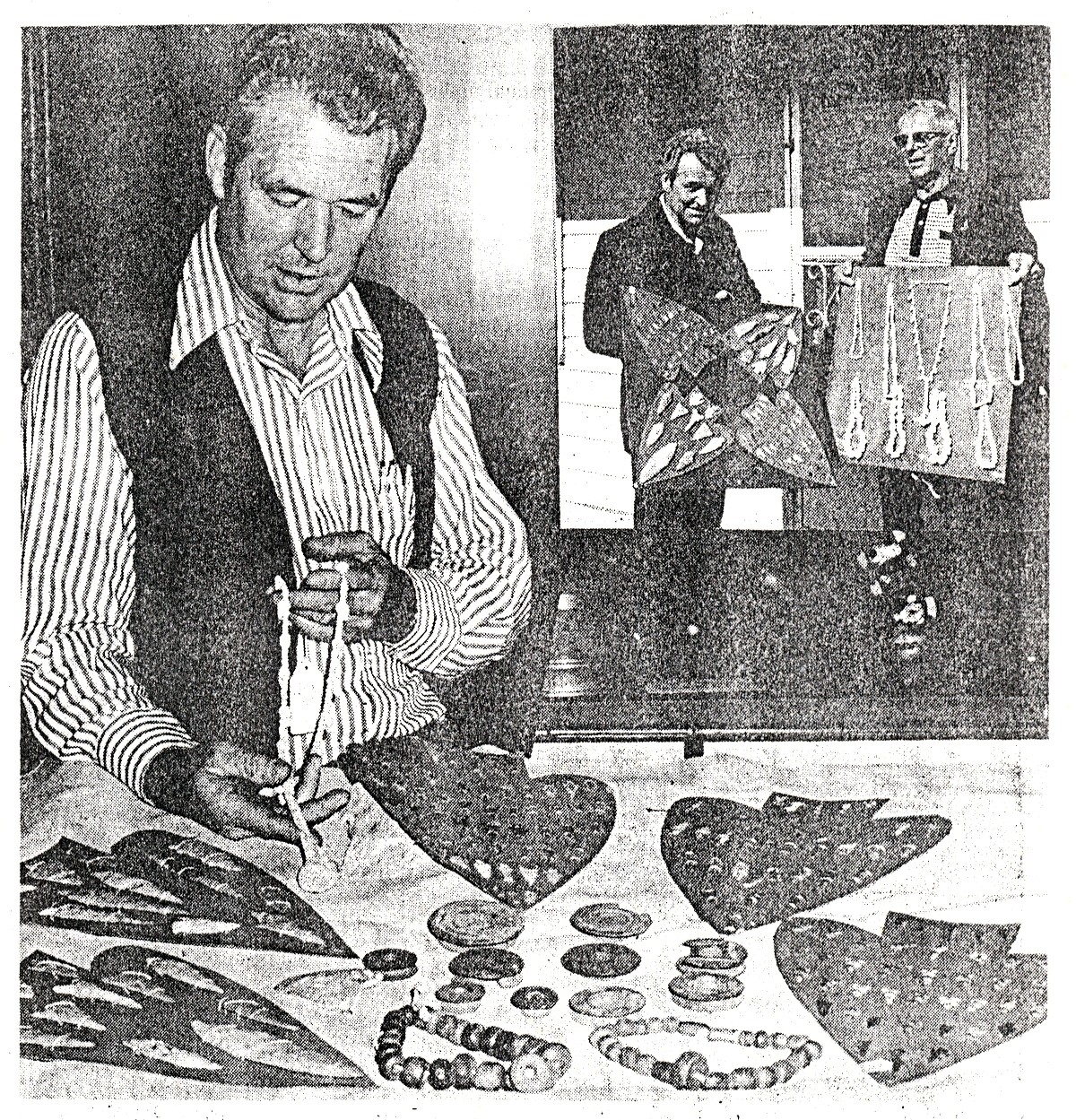 The collection, belonging to William Clay Beach, who now lives in the Cowlington area, contains over 3,000 beads of 35 different styles, 300 arrow points, spear points and scrapers, rock ear spools, shell face effigies, bone awls and pieces of material, museum director James Gaylor said.
