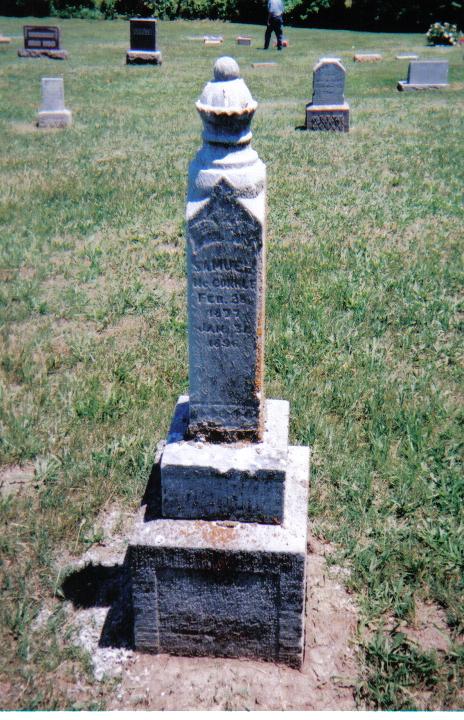 Samuel McCorkle, son of John McCorkle and Lydia Tyler Forrest, McDaniel Cemetery, Cameron, Missouri. Thanks for permission from Find A Grave contributor SandyT to use this photo. Click on photo to enlarge it. |