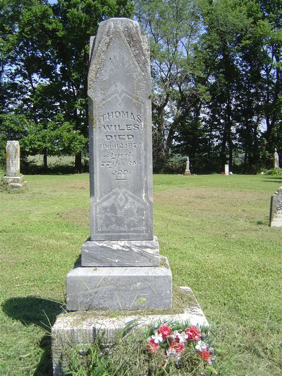 Thomas Wiles, father of Stephen Wiles, Waubonsie Cemetery, Mills County, Iowa. Thanks for permission from Find A Grave contributor Ken Beckman to use this photo. Click on photo to enlarge it. |