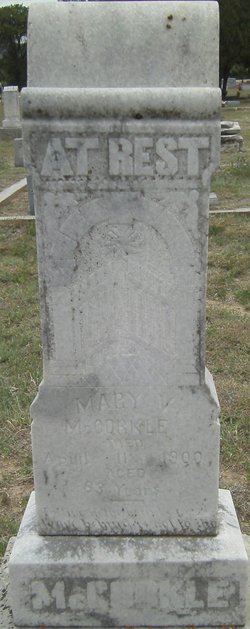 Mary Virginia Williams, wife of Uriah Jackson McCorkle Pleasant Valley Cemetery, Owens, Texas. Thanks for permission from Find A Grave contributor MemorialsbyJMiller to use this photo. Click on photo to enlarge it. |